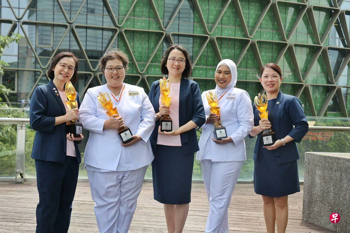 另三名得奖护士是新加坡中央医院护理副处长艾琳娜(Elena Binte Mohamed Ayob,45岁)、心理卫生学院助理护理主任许淑娟(50岁),以及新保社区医院护理总监叶婷惠(54岁)。
