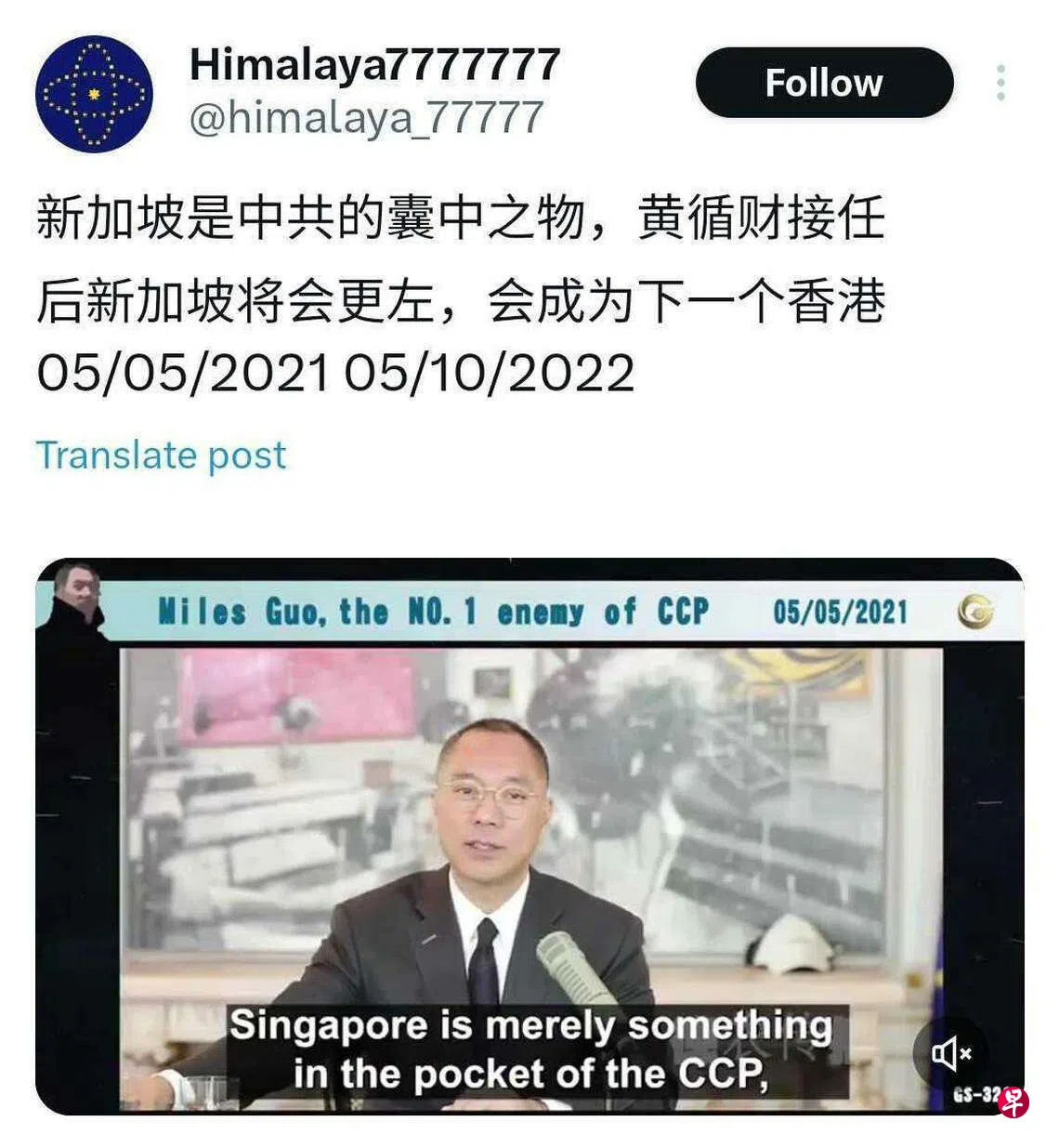 内政部说,郭文贵建立的网络也发布其他各种与新加坡有关的论述。整个网络经协调的行动,以及它利用新加坡来推动议程的先例,显示它愿意且有能力散播虚假陈述,损害新加坡的利益。
