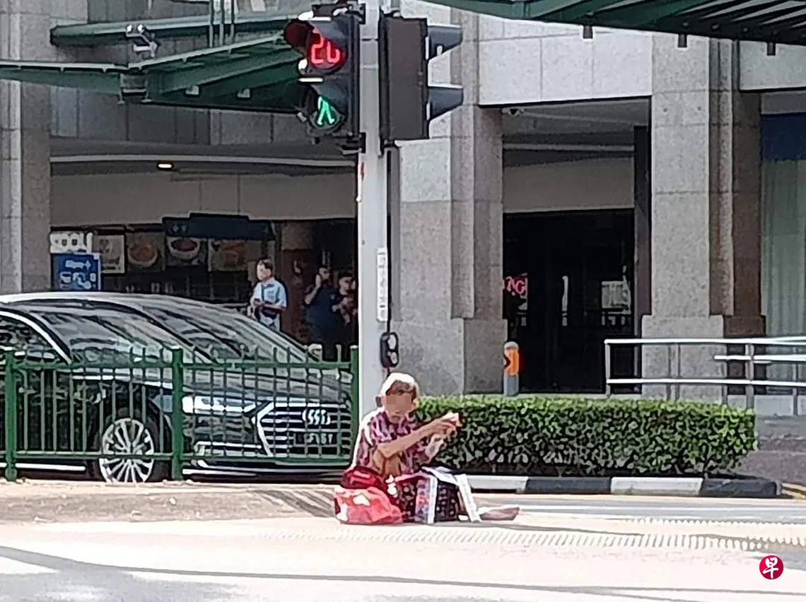 这名戴着眼镜的阿叔两次被拍到在武吉士一带售卖纸巾,其中一次是在7月17日,当时他坐在白沙浮商业城(Bugis Junction)的两条道路中间,另一次则是星期六(20日)早上,他被拍到坐在武吉士街的巴士站旁。