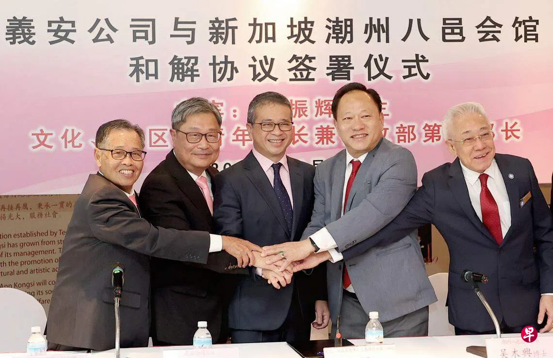 义安公司和潮州八邑会馆去年底在主管华社事务的唐振辉见证下签署和解协议,化解长达六年的纷争。双方皆对唐振辉从中斡旋调解表示感谢。