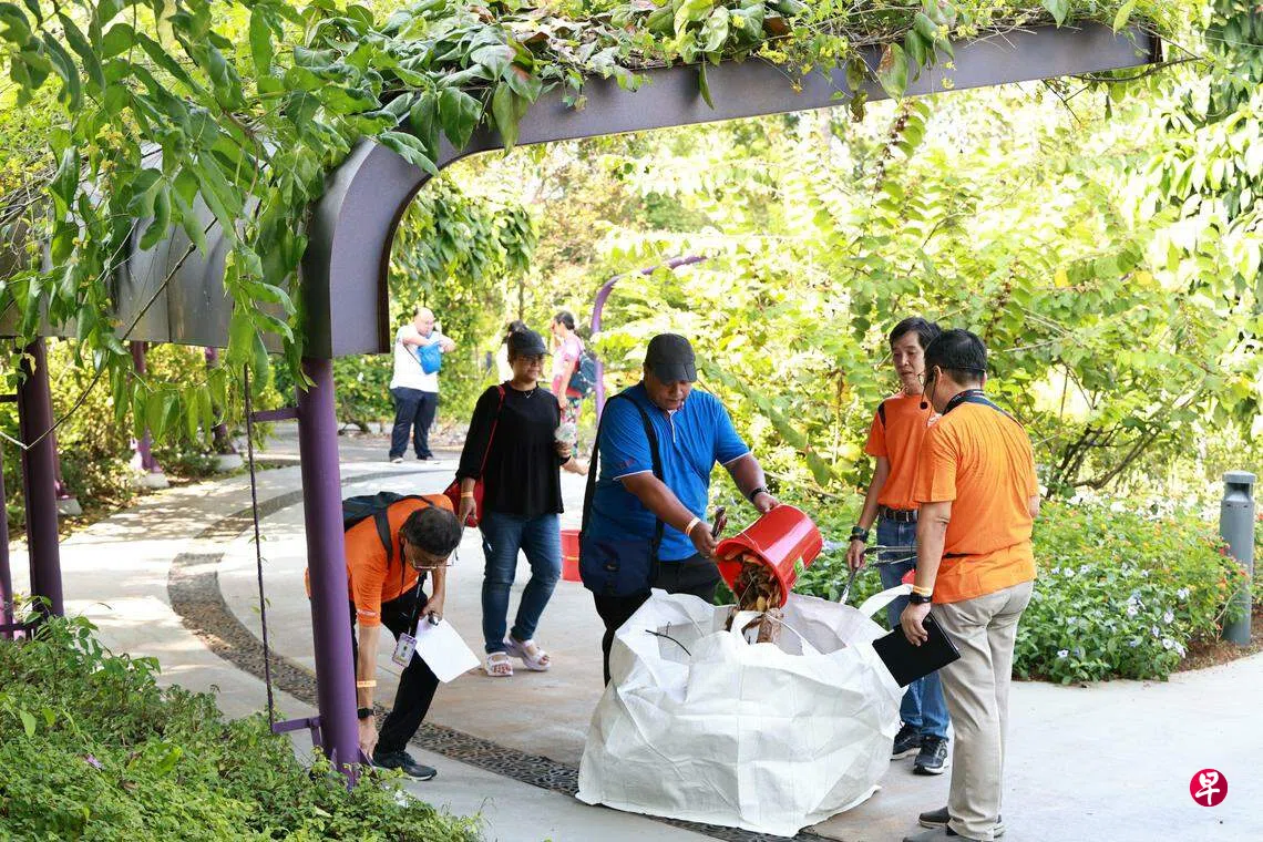 永续发展与环境部兼交通部高级政务部长许连碹博士,星期天(7月28日)加入150名新捷运和滨海湾花园的志愿者大队,一起参与清洁日的捡垃圾活动。