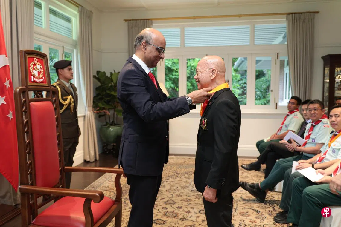 星期四(8月1日),曾任童军总会副首席总监的袁国栋和另外33人,获颁今年的童军总会卓越服务奖。其中,最高荣誉——一级银奖章(Star to Silver Award),颁给了77岁的袁国栋。