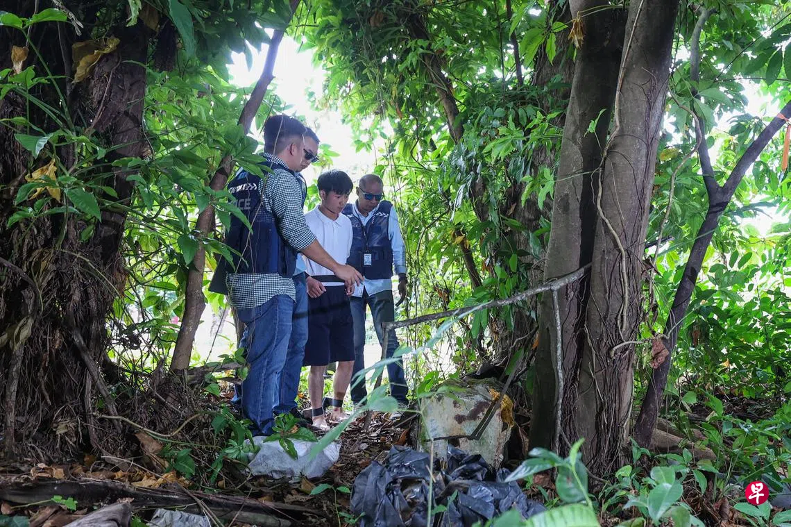 星期五(8月2日)早上11时12分,警方将身穿白T恤、黑色短裤和透明拖鞋的被告带回现场进行调查,他全程神情冷淡,在回答警员的询问时也很冷静。