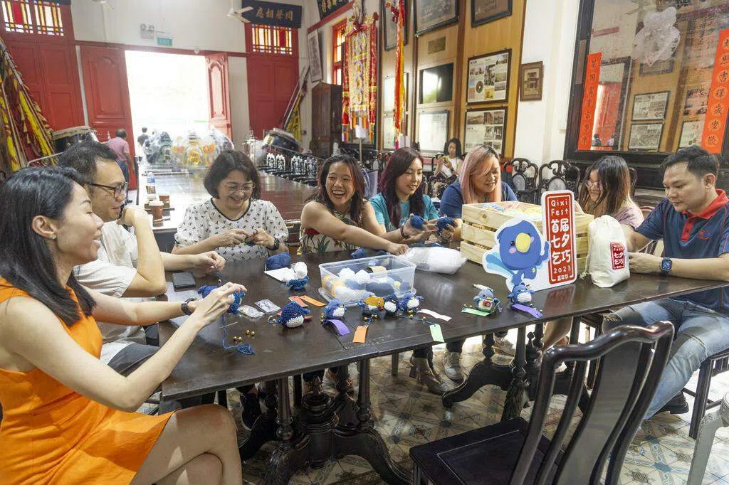 恭锡街当天也举行一系列活动和表演节目,吸引许多公众参与,包括学习制作七夕特色糕点巧果。巧果是一种油炸小点心,主要由面粉、糖和蜜制作而成。