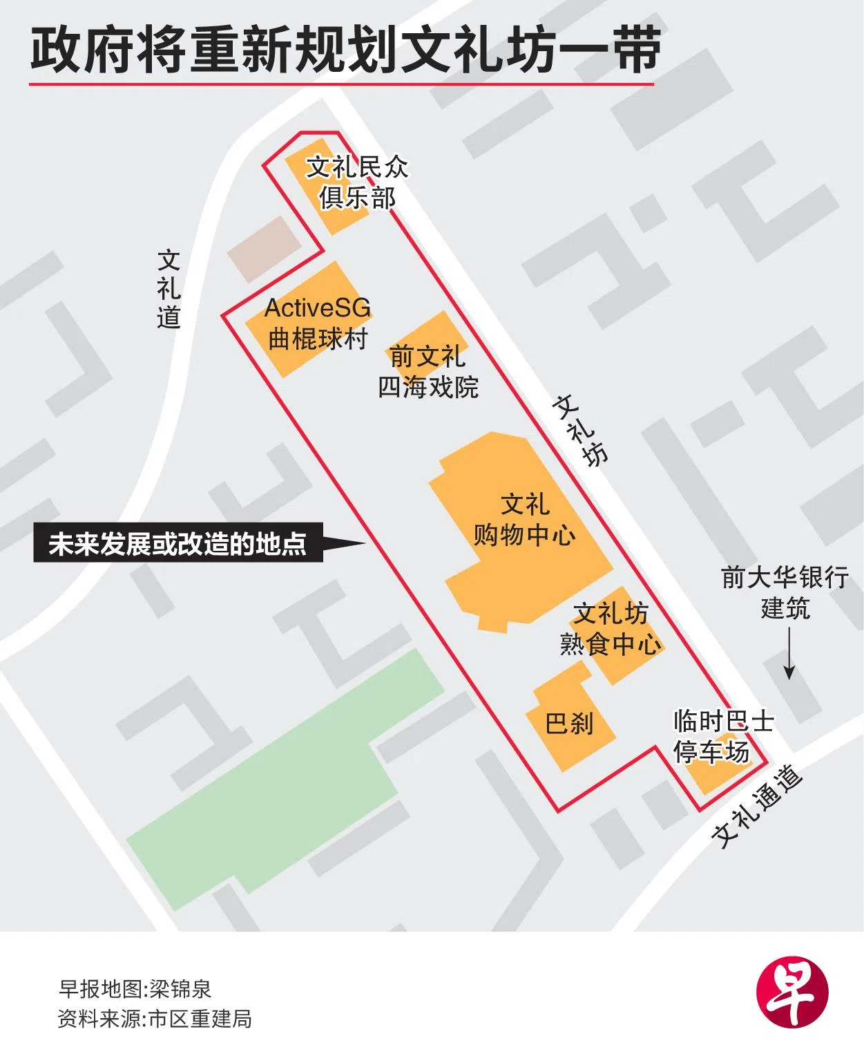 政府将重新规划文礼坊一带,包括探讨如何改造现有的临时巴士停车场、文礼购物中心、文礼四海戏院(Savoy Theatre)旧址、ActiveSG曲棍球村等,为这些建筑寻找新用途来满足居民的需求。
