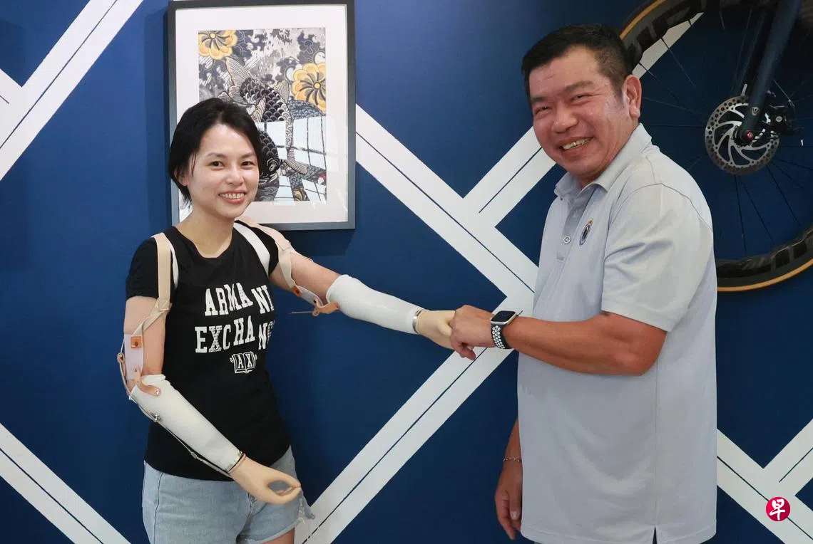 因细菌感染截四肢保命的美容师,终于重获“双手”!在狮子义肢中心捐助下,上周装上双手义肢的她感到非常兴奋,不过义肢超过一公斤,还需要锻炼肌肉去适应,目前只能用手握住包装饮料。