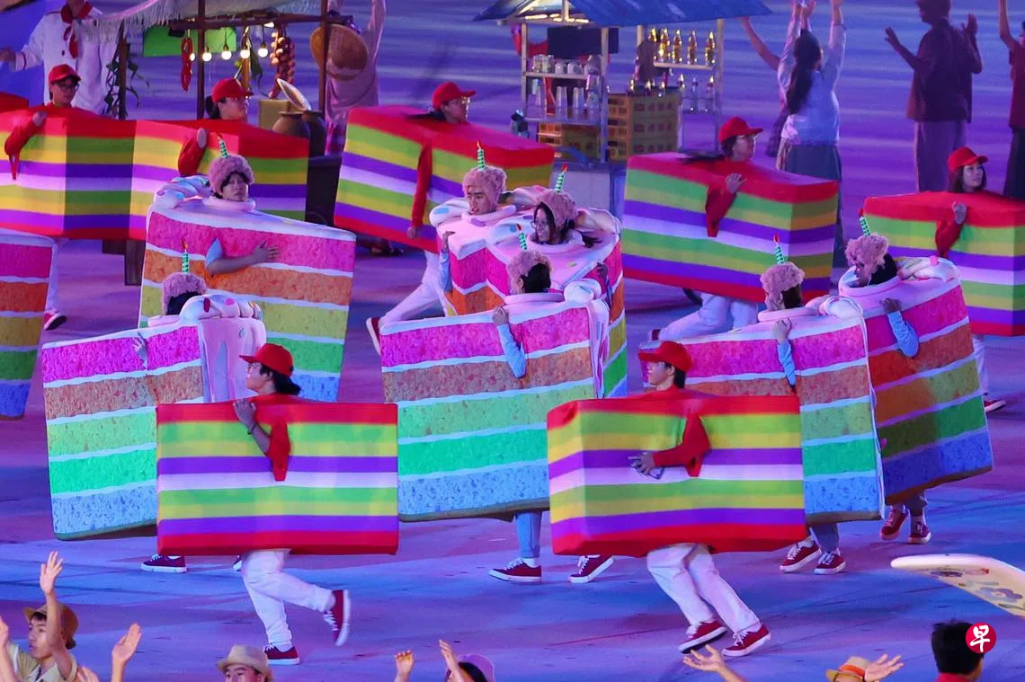 今年的国庆庆典中,表演者身穿立体彩虹蛋糕、九层糕、榴梿、鱼圆等服装,为第四幕的美食篇增添趣味和活力。然而,这些服装也给表演者带来不少挑战。