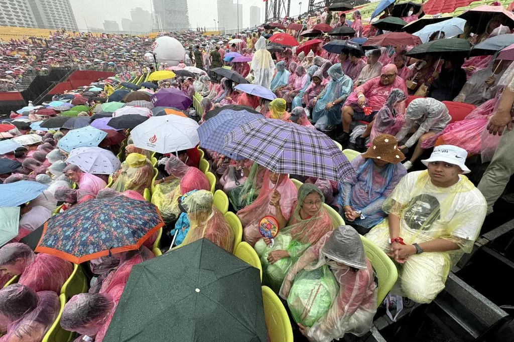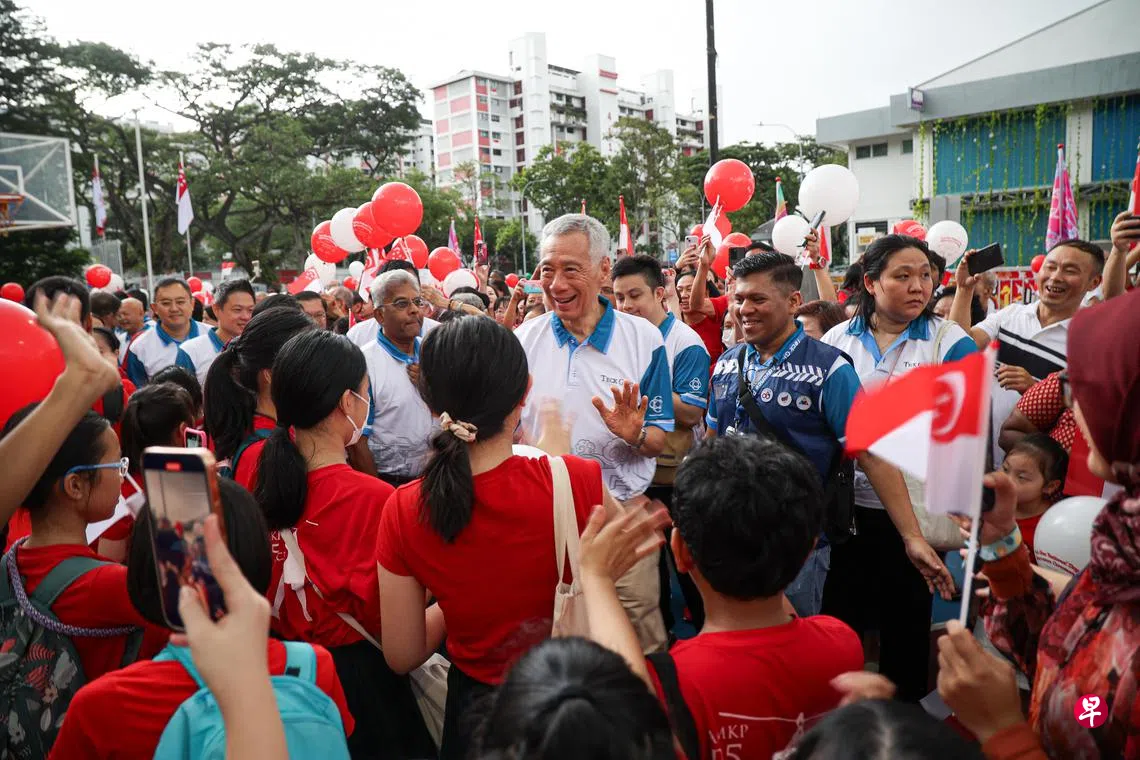 国务资政李显龙在国庆日当天,与1000多名德义区民众一起,在“大雨的祝福中”为新加坡庆生。