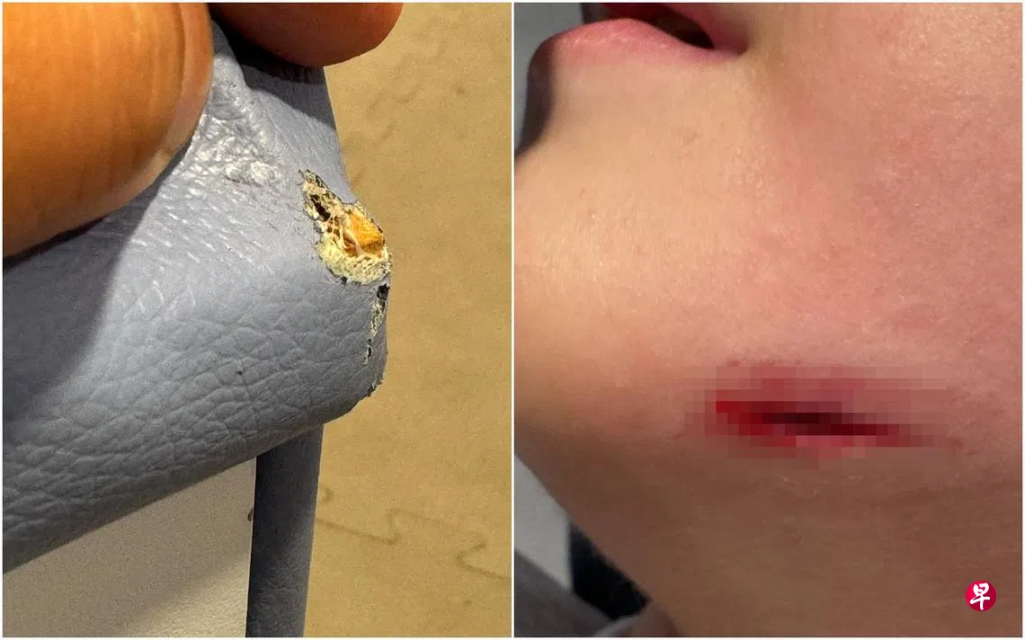 这名父亲说,沙发顶层是一层人造革覆盖的海绵坐垫,下方两层则用于放置鞋子。怎料,位于沙发尖角的人造革已经破损,里头木板尖角外露,儿子下巴不巧磕在尖角上,顿时受伤流血,留下约两公分的伤口。