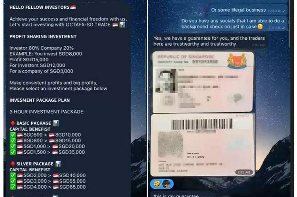 在第一类骗局中,受害者会被骗徒加入Telegram等聊天群组或频道,骗徒一般假称是名人或来自某个知名公司。聊天群组内的同伙接着会不断分享所谓的投资获利截图,一步步诱使受害者进行投资。