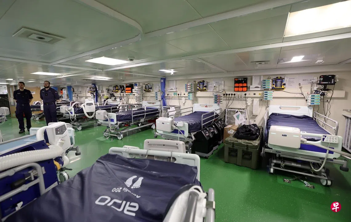 医疗船百眼巨人号星期三刚从在澳大利亚举行的“捕食者奔跑”(Exercise Predators Run)演习返回新加坡,这是百眼巨人号数月来第二次停泊我国。船上约有300人,主要为医疗人员和工程师。船上可容纳100张病床,并设有急诊室、抢救和外科设施,以及一个配有电脑断层扫描仪(CT)的放射室。