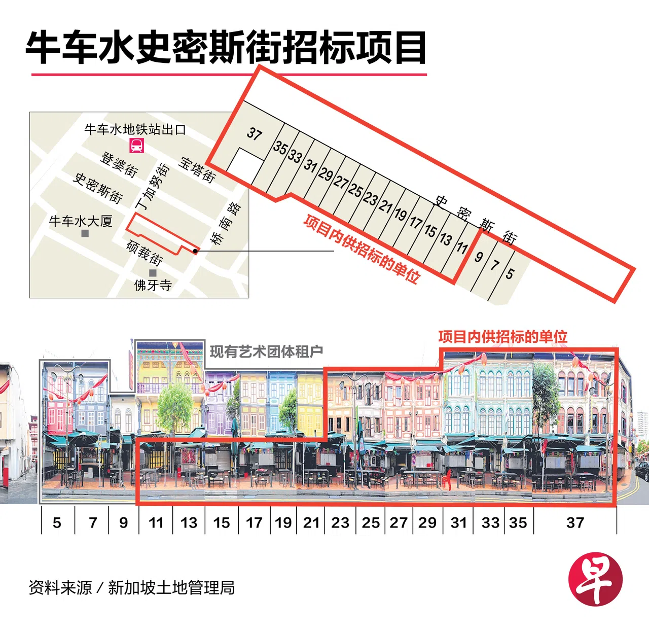 为打造更具活力的牛车水,土管局、新加坡旅游局和市区重建局,去年11月底联合发出招标书,为史密斯街的13个店屋和毗邻的步行街(即原本的牛车水美食街)寻找“总租户”,由它负责扩大零售和餐饮选项,为牛车水吸引更多游客。