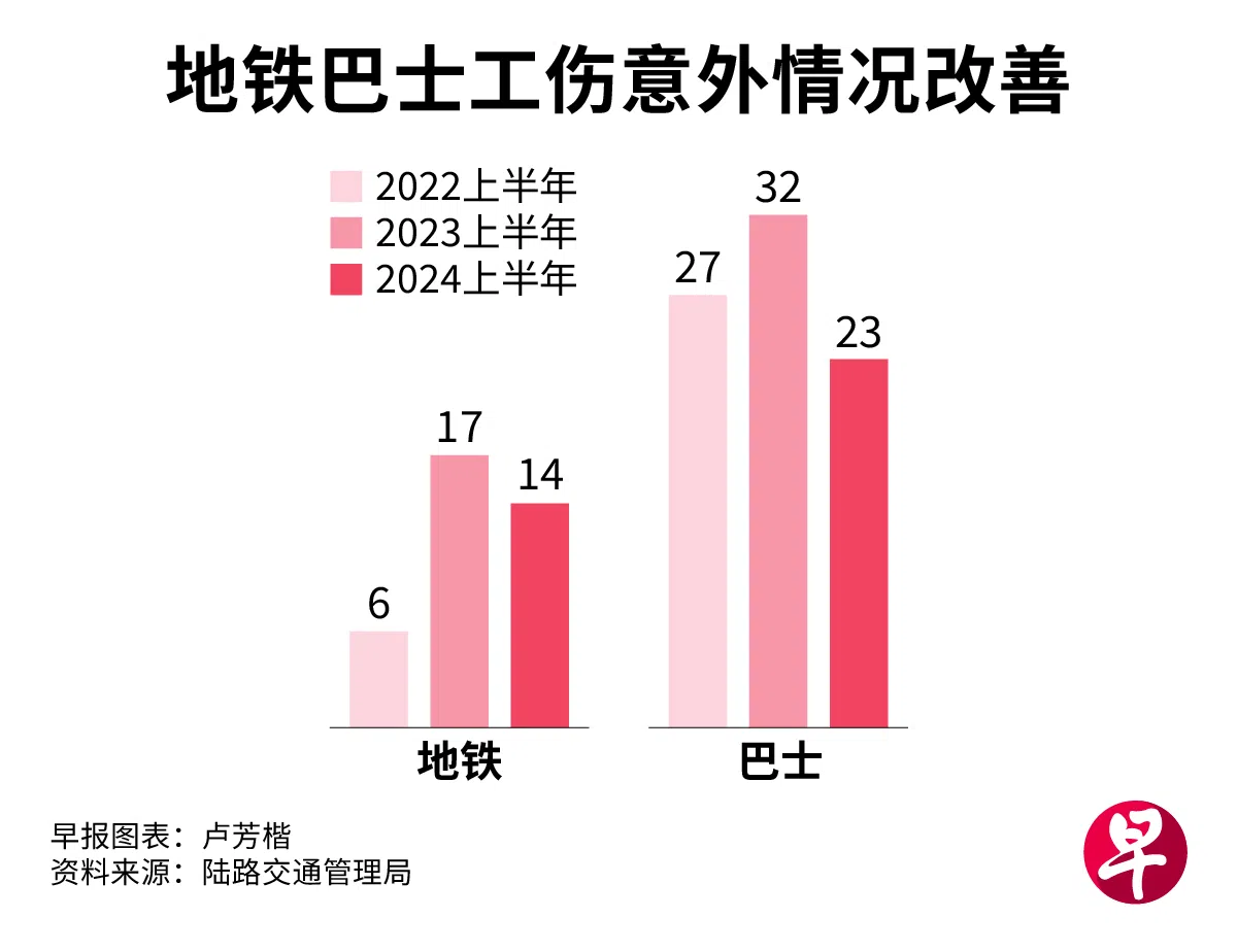 本地公共交通人员因工受伤的情况改善。今年上半年,涉及地铁和巴士运作的工伤意外共有37起,同比减少12起。接下来,当局将针对巴士安全征集公众意见。