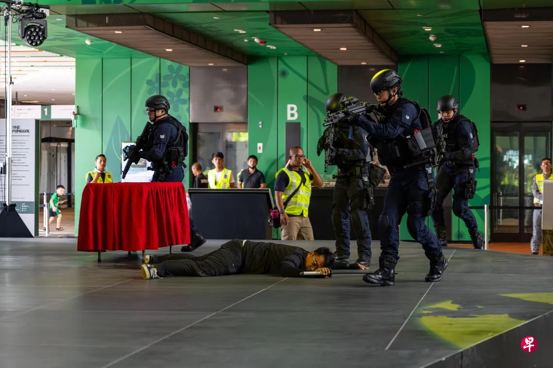 新加坡警察部队首次在综合社区中心举行反恐演习,模拟打击持械恐怖分子、应付车辆攻击以及拆除爆炸装置等行动,展示我国应对恐怖袭击的能力。外国警队代表也到场参观。