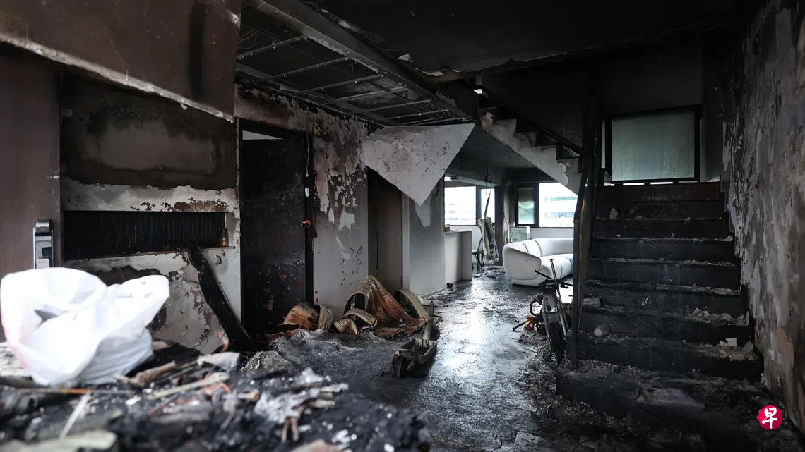 新加坡民防部队受询时指,六楼单位的客厅失火,而火源涉及客厅内的个人代步工具(PMD)。