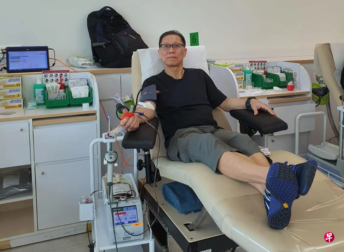 多年无偿捐血不求回报,但这次愿意受访,源自陈国发看到《联合早报》报道,过去10年本地捐血青年比率大幅下降,从2013年的31%降至去年的15%。这情况让他感到担忧,希望通过个人经历,起抛砖引玉作用,鼓励更多人捐血。