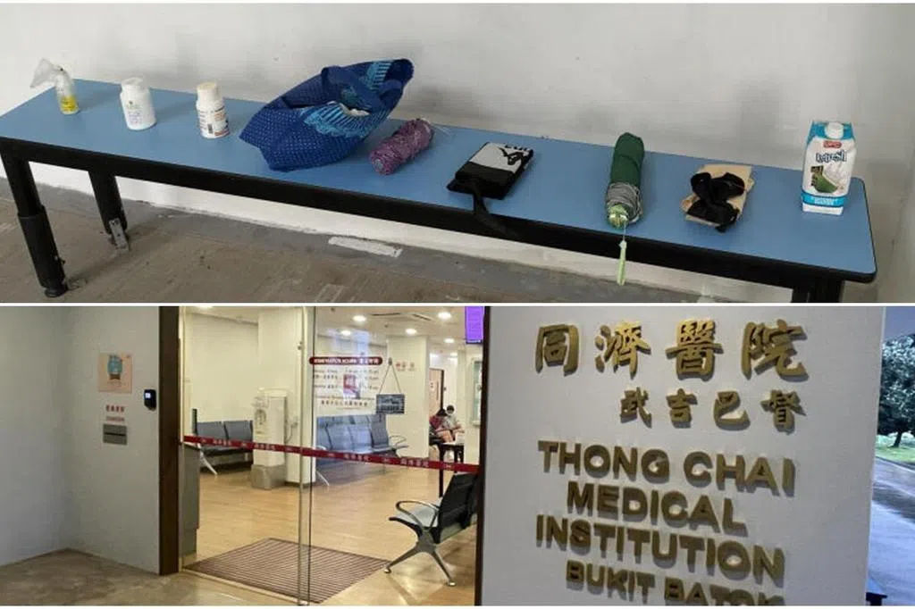 贴文中也附上两张照片,一张有近20人在排队,另一张则显示地上摆着多个被石头压着的袋子和黑布,相信就是居民用来霸位的物品。