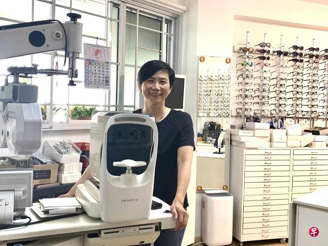 这家开了27年的眼镜店,坐落在蔡厝港德惠区的一个四房式组屋单位里,偶尔有顾客上门,摆满镜框和验光器材的房间才会亮灯;店里的生意越好,这个家就越热闹。