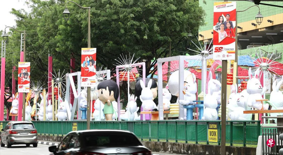 今年牛车水中秋灯饰统一采纳“兔子”为主要装饰,嫦娥与灯笼等元素不多,有公众认为少了传统寓意,有者则表示支持,认为摩登设计可吸引更多公众驻足拍照打卡。