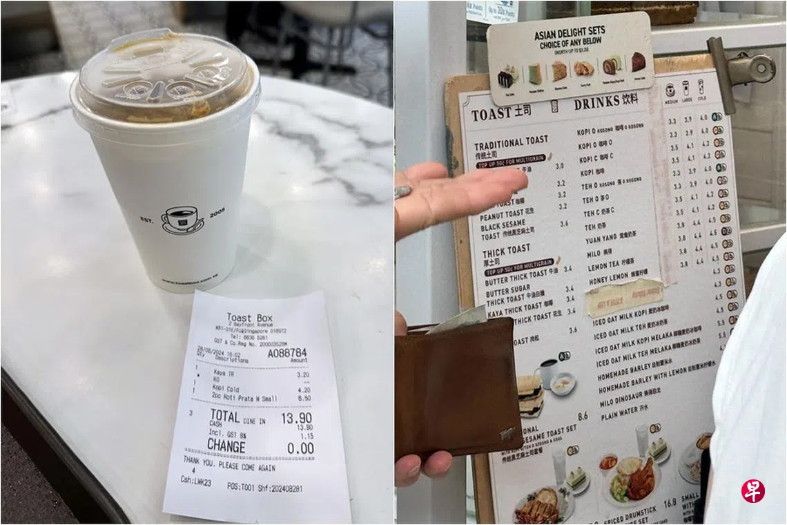 近几周,不少网民在网络上对土司工坊(Toast Box)的价格调涨表示不满。《新明日报》记者星期三(8月28日)下午和星期四(29日)早上走访滨海湾金沙、比达达利桦丽坊(The Woodleigh Mall)、313@Somerset商场、百胜楼、大巴窑建屋局中心(Toa Payoh HDB Hub)等数家分店时,发现经调整后,金沙分店的售价最高,一杯咖啡乌冰的价格达4元、一杯咖啡冰则要价4元2角。