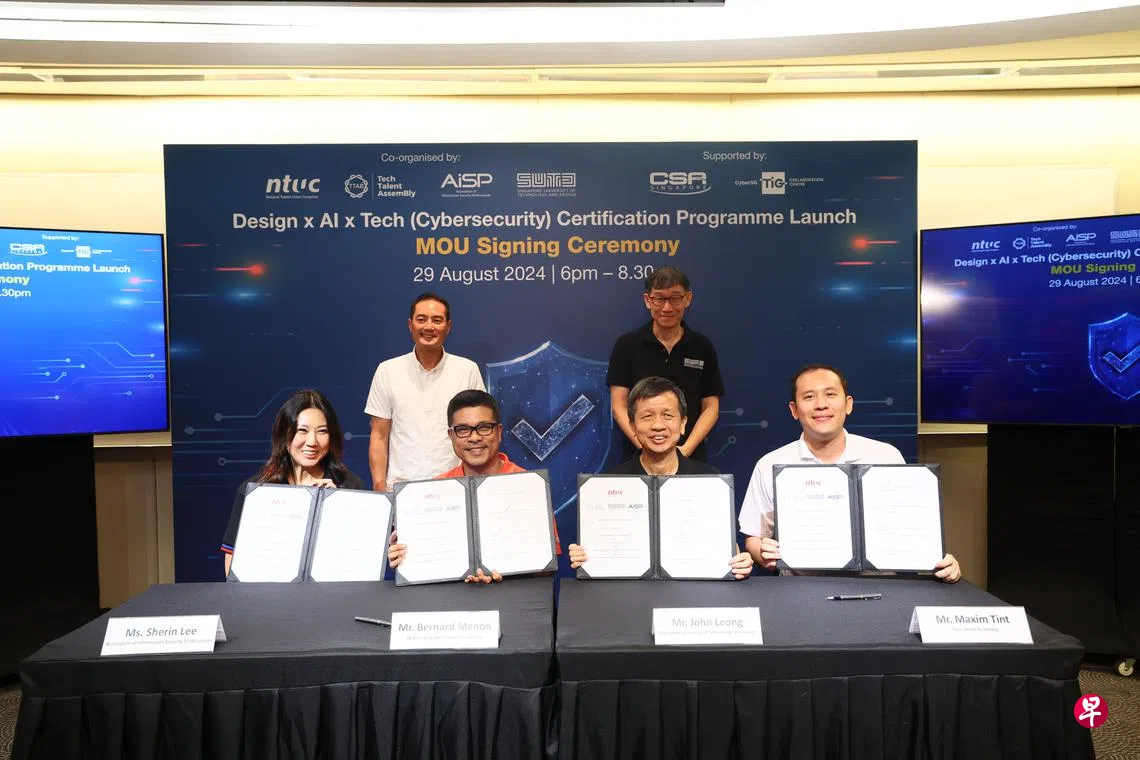 这项设计x人工智能x科技(网络安全)认证计划(Design x AI x Tech (Cybersecurity) Certification Programme),由新加坡科技设计大学、全国职工总会、资讯通信专才协会和科技专才协会共同推出。