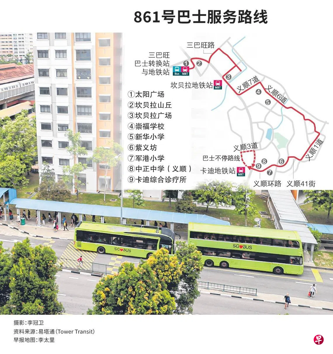 从9月15日起,义顺和三巴旺的居民可乘搭新的861号巴士路线,更方便地往来区里的设施和学校。
