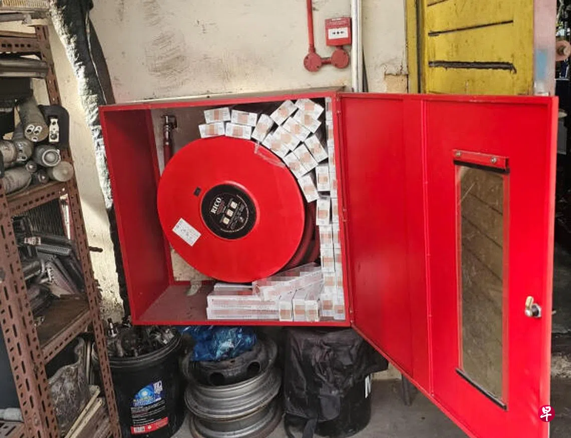 《新明日报》接获读者通报,指星期四(8月29日)早上约8时在先驱北路一带的修车店附近,发现消防柜里头藏了不少漏税烟。