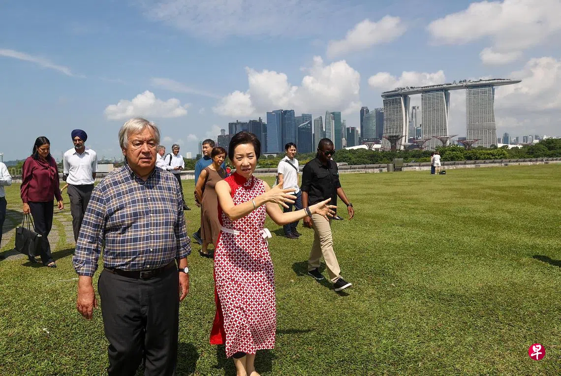 古特雷斯也参观位于滨海堤坝的新加坡资源永续展览馆。馆内展示我国所采取的各种措施,以成为一个更可持续、更具气候韧性的国家。
