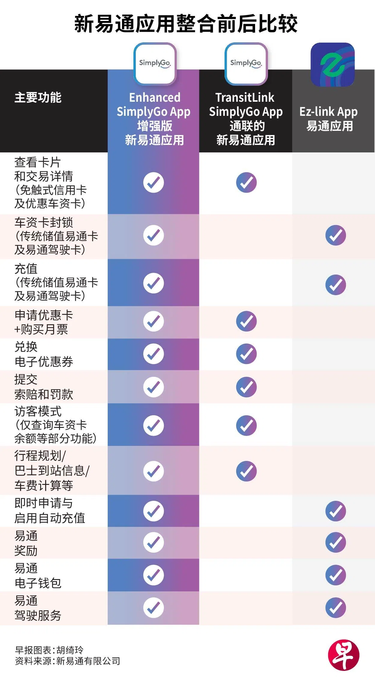 新易通有限公司(SimplyGo Pte Ltd)星期五(9月6日)发文告宣布,新的增强版应用整合了原来的易通(EZ-Link)和通联的新易通(TransitLink SimplyGo)两个应用。