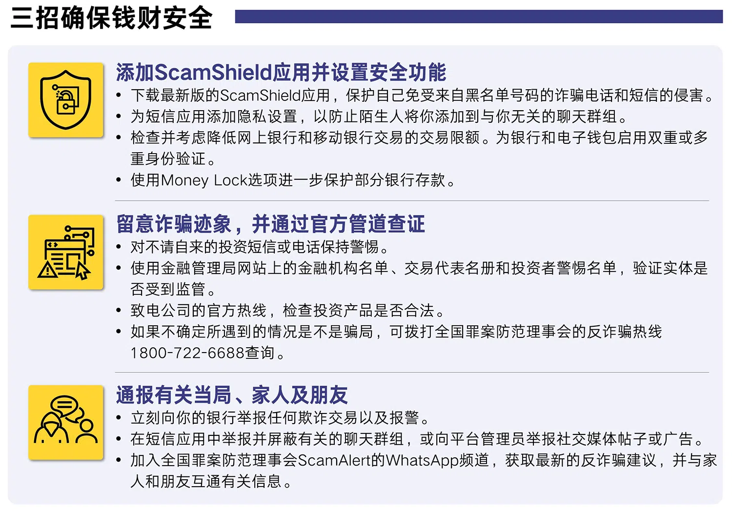 那么,你要如何保护自己呢?新加坡金融管理局发言人建议,“在与任何提供金融产品和服务的人打交道之前,务必进行所有必要的核查。”