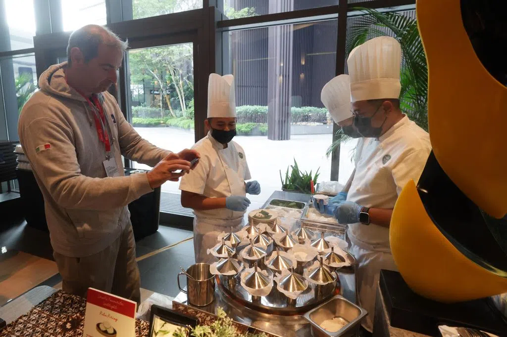 为迎接教宗到访,本地32所教堂的约1000名信众下午2时许起,便在艳阳下的侏罗纪步道(Jurassic Mile)两侧列队等候,其间他们互相祝福、齐唱圣歌并合影留念。