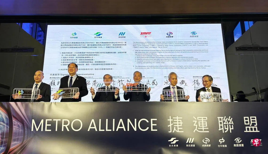 本地公共交通业者SMRT企业与台湾五家捷运公司组成的捷运联盟签署谅解备忘录,加强在人才培育、技术交流、采购机制和业务拓展方面的合作。SMRT是首个加入这个联盟的海外地铁业者。