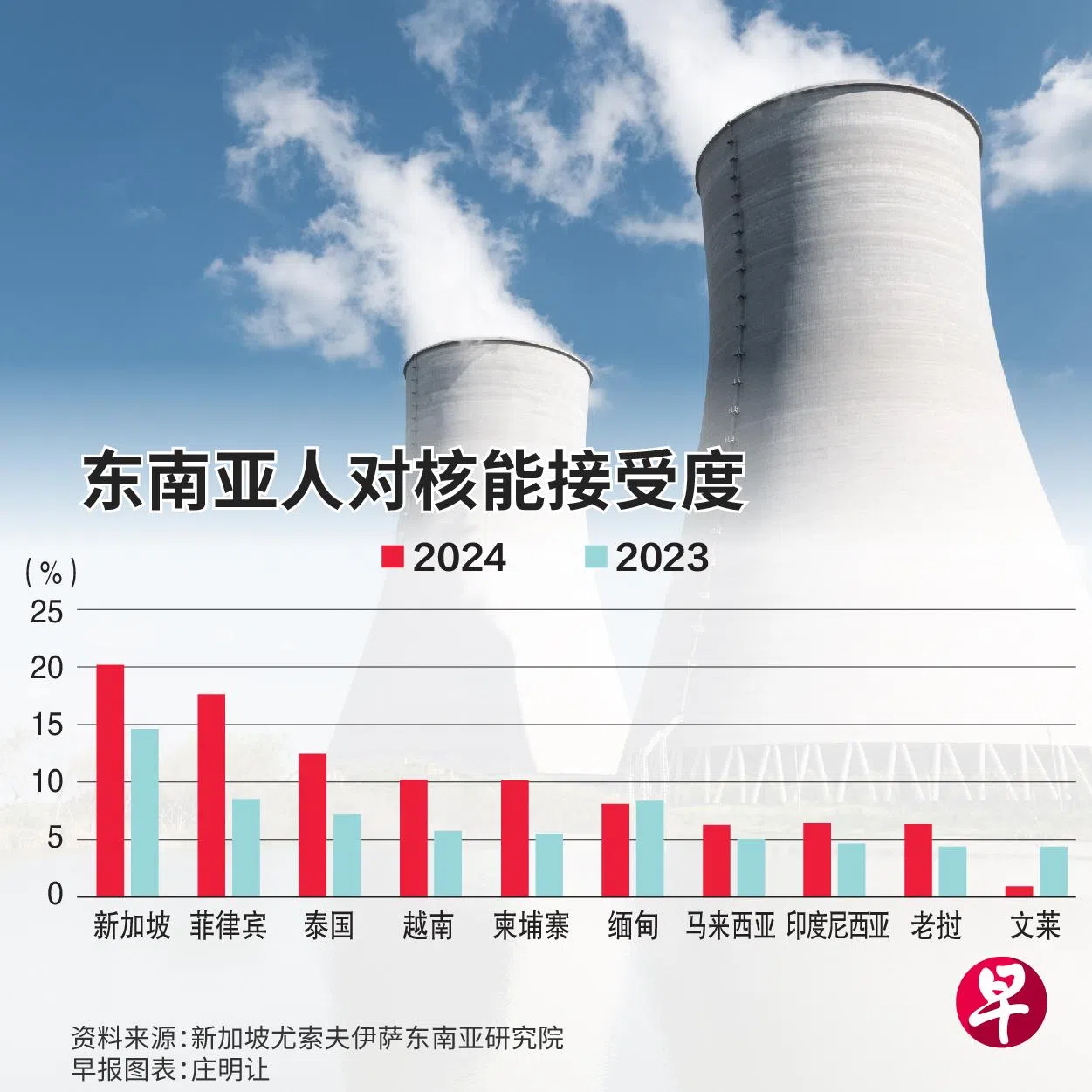 在东南亚10国受访者当中,新加坡人对核能的接受度最高,认为它有潜能成为清洁的替代能源。支持使用核能的本地受访者逐年上升,从2022年的10.7%,翻了近一倍至今年的20.3%。