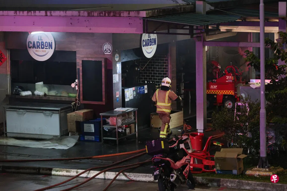 民防部队在脸书贴文说,火患涉及咖啡店的几个档口,消防员使用了一台灭火机和两支水枪灭火,无人伤亡。