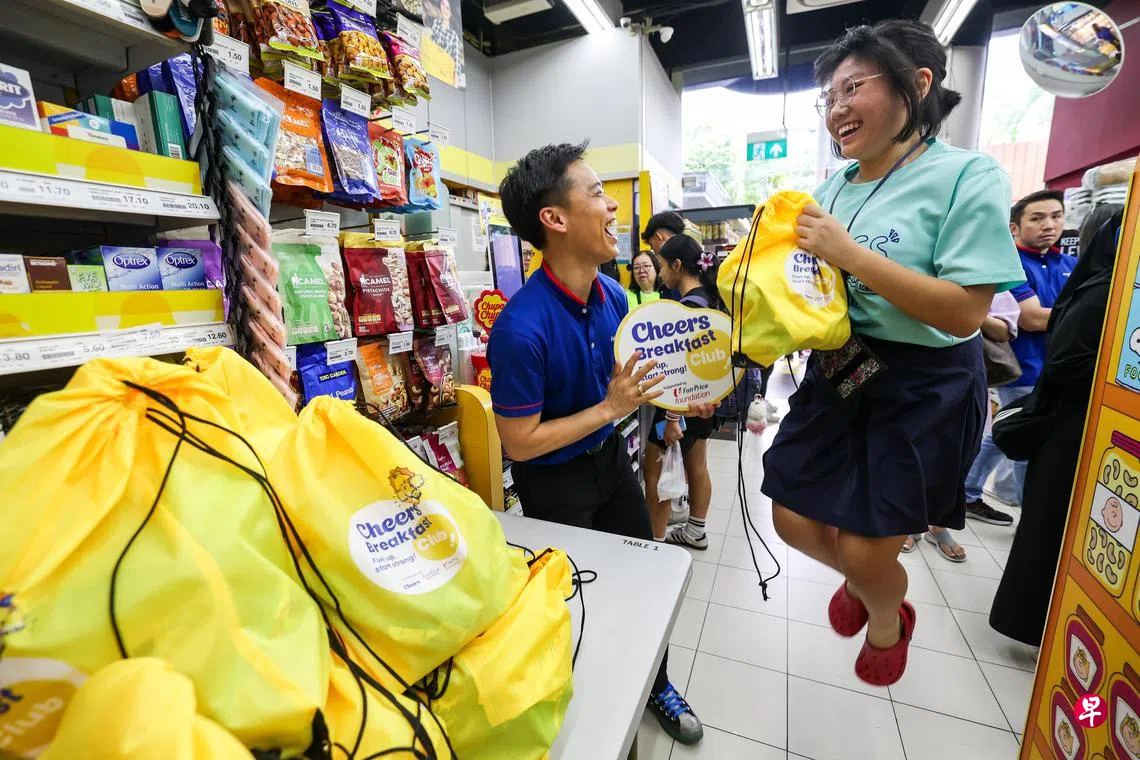 乐赛小学的小六生洪玺恩星期五(9月20日)在宏茂桥城(AMK Hub)一楼的雀喜便利店领了一份暖心早餐包,兴奋地跳了起来。