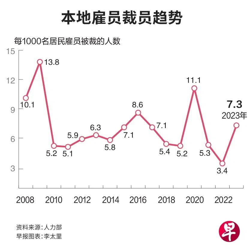 根据报告,2008年至2023年,本地每1000名居民雇员中平均有七人被裁,情况大致持稳。但在经济环境严峻或出现危机时,裁员率也随之增加。