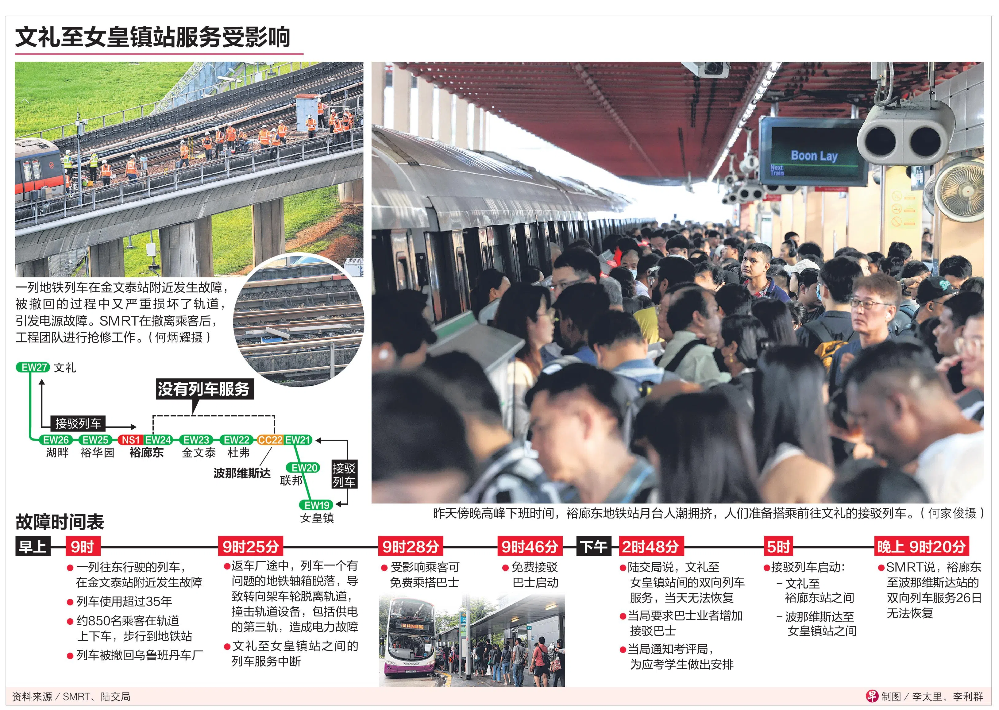列车故障引发电源跳闸,地铁东西线部分列车服务中断从星期三(9月25日)持续到星期四(26日)。交通部长兼财政部第二部长徐芳达说,陆交局将彻查原因,了解哪些方面可改善。