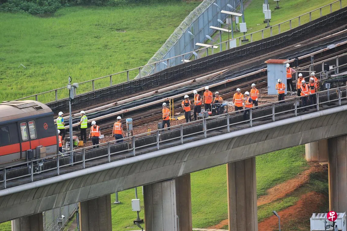 SMRT说,工程师团队将彻夜抢修受损的转轨器(point machine)和供电第三轨。