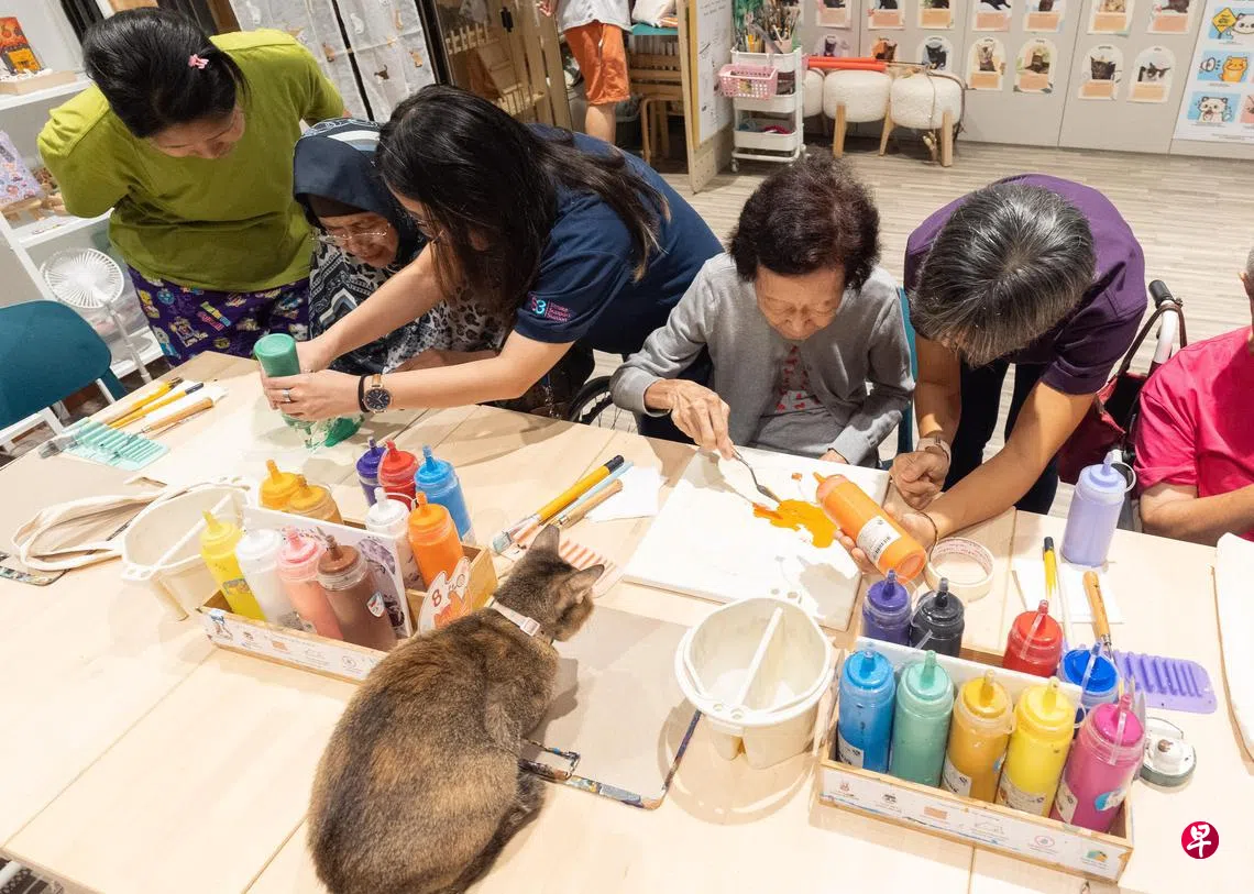 中风援助中心(Stroke Support Station,简称S3)与艺术画室Wildflower Studio合作,从9月开始试行Kit-Fit项目,让患者在常规康复治疗外,通过即兴艺术创作、迷你游戏,加上与猫咪互动的辅助活动,提升中风患者的社交、情感和身体健康。