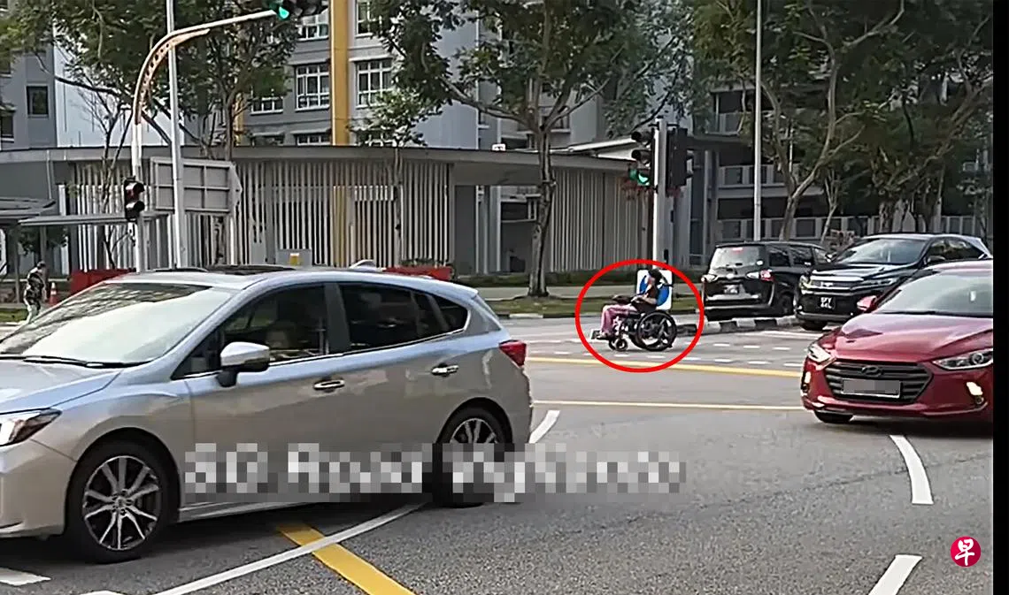 脸书主页“SGRV”日前发布一段1分55秒的视频,注明事发地点在盛港东路。画面可见,一名老妇坐着行动辅助工具,在红灯的情况下过马路,期间不少车辆都被迫放缓车速甚至停下。
