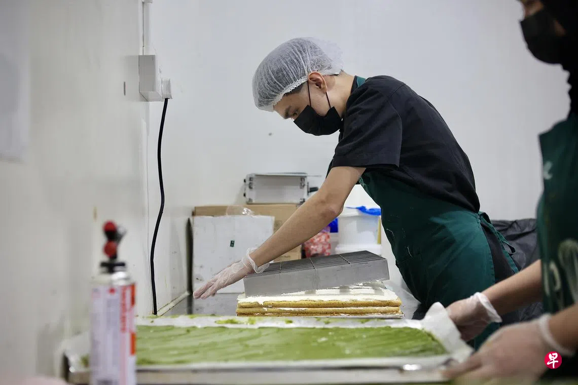 《联合早报》记者日前下午走访Edith Patisserie位于大成地铁站附近的中央厨房,看到黄宇恒(19岁)熟练地切分抹茶蛋糕,然后将成品放在大托盘,送到冷藏间里保鲜。他对记者说:“我在这里工作很开心。”