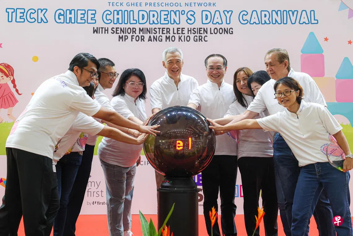国务资政李显龙星期天(9月29日)上午,在宏茂桥工艺教育学院出席德义区儿童节嘉年华会时,为这个社区倡议主持启动仪式。超过2000名学前儿童、家长和教育工作者,共同欢度儿童节。李显龙是宏茂桥议员。