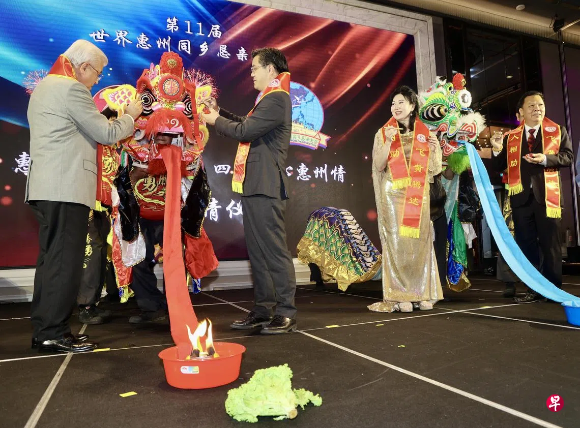 另外,主办方特地安排了两头麒麟,由大会主席郭观华、主宾蔡其生、惠州市委常委赖建华,以及惠州会馆会长兼大会筹委会主席萧立娟,主持点睛仪式。麒麟舞是惠州传统舞蹈,属广东省省级非物质文化遗产之一。