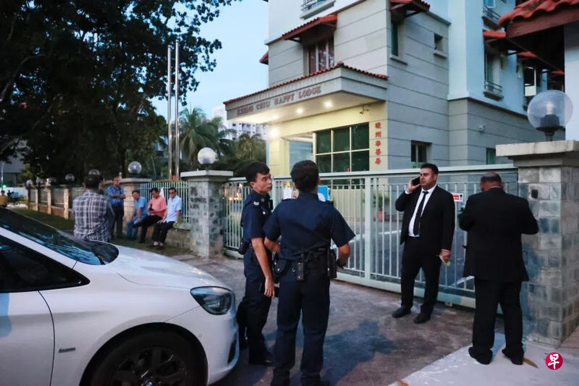 海南会馆风波延烧,琼州天后宫现主席查访旗下老人院时,发现大门突然被锁,一行12人遭拒于门外,惊动警员到场。