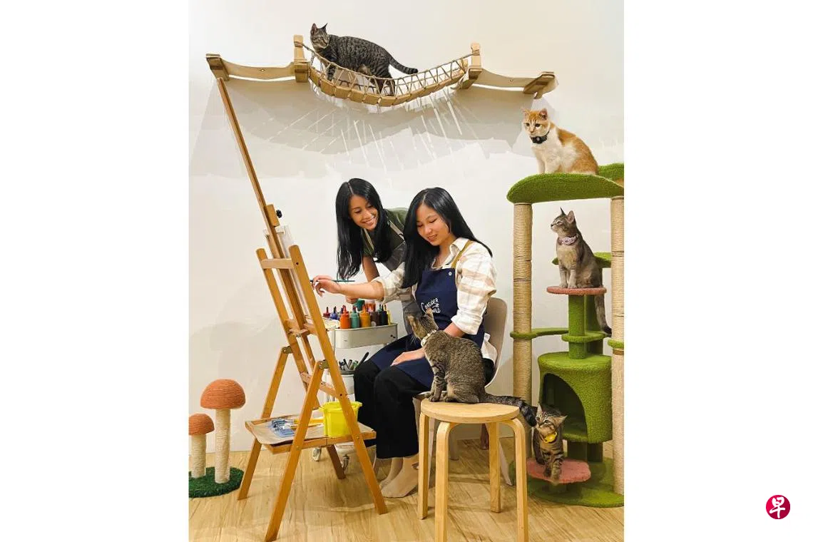 这些猫不只是“卖萌”,左丽玲和员工会在绘画开始前安排互动时间,向访客讲解猫救援工作和相关知识,既教育公众,也帮助猫咪适应人类,增加被领养的机会。