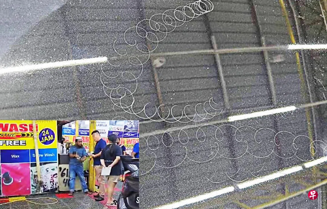 不幸遭殃的车主李先生(业务员)日前在脸书群组上申诉,他日前在新山洗车时,洗车工人在没询问下就用机器在引擎盖上打磨,导致引擎盖被刮花。