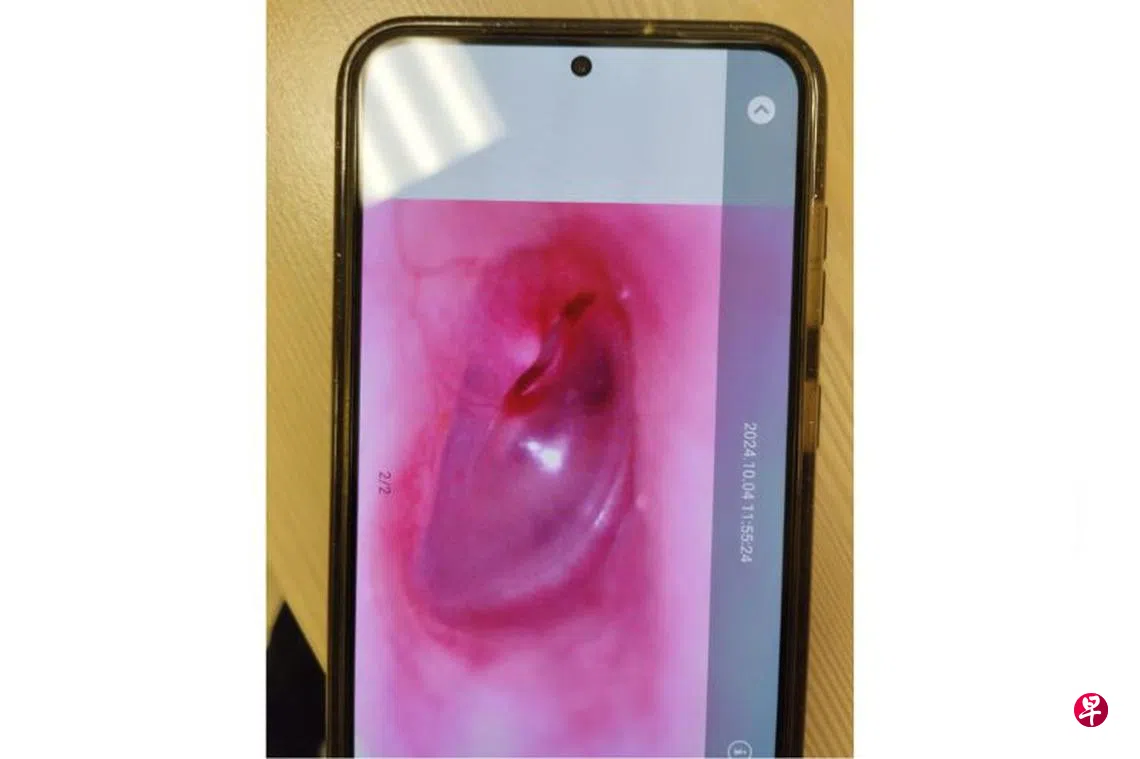 第二天上午约10时30分,他和女儿到医院复查的路上,女儿的右耳突然流出不明液体,到医院拍片后,才发现她的右耳膜已经破裂。