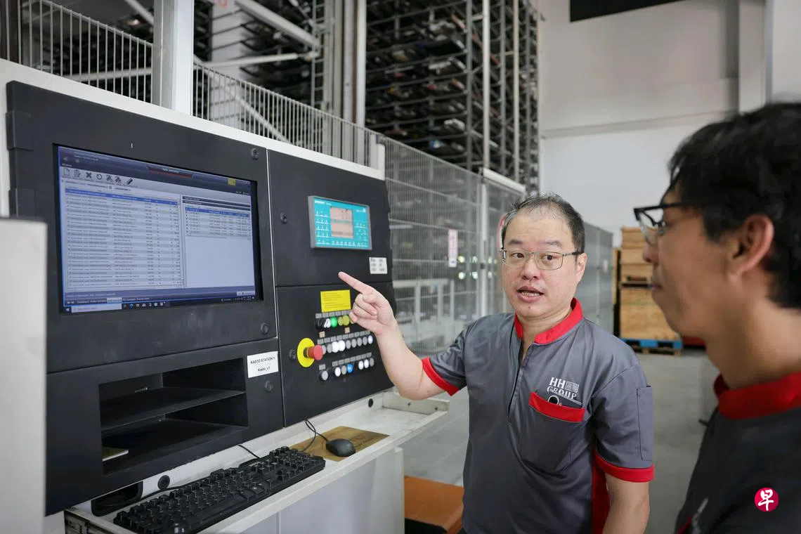 鸿福五金集团拥有约100名员工,销售的钢材制品广泛用于组屋冷气外机支架、地铁扶手和基础设施等。除了大型升降机,公司近年还添置了磁铁吊运机械、自动化仓库系统等设备,以提高生产安全。