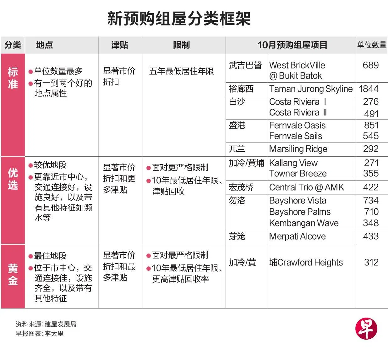 现有的约110万个组屋单位和已推出的预购组屋项目,则不受新分类框架影响。