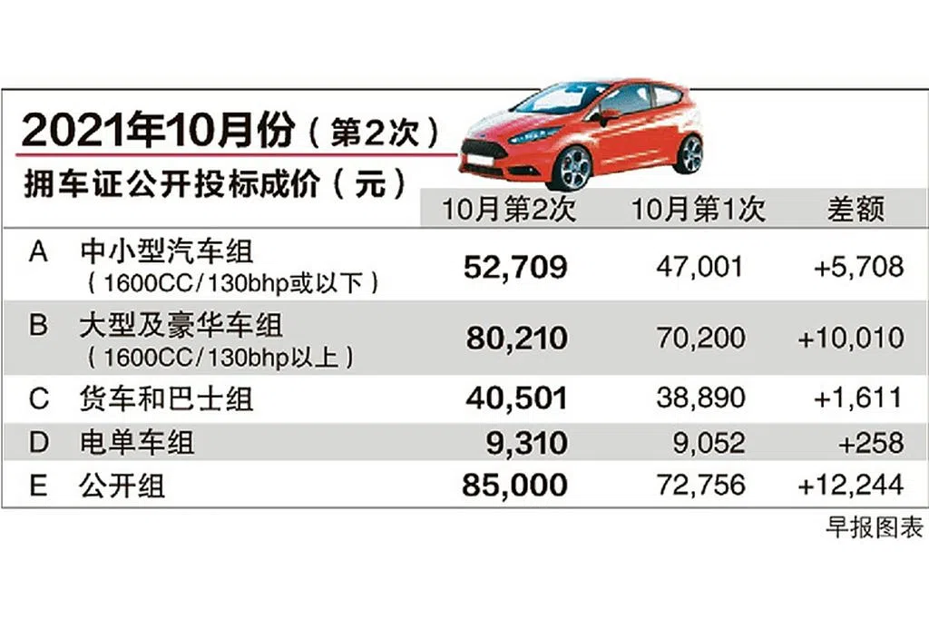 最新一轮的拥车证投标活动中,所有组别的成价全面上扬。除了货车和巴士组,其他组别都写下今年新高。其中,汽车组别因近期车展带动需求,涨幅最大。